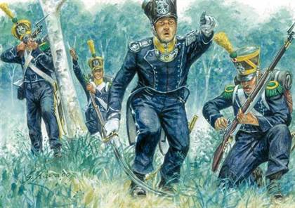 Quand le bataillon se déplace en colonne les voltigeurs peuvent être déployés en tirailleur à l’avant de la colonne pour prévenir toute embuscade. Ce sont eux qui fouillent les maisons, inspectent les bosquets, reconnaissent les ravins… En fait seuls les 2/3 se dispersaient en tirailleurs, les autres restaient groupés tant est si bien qu’en cas d’attaque de la cavalerie ennemie le tiers resté groupé pouvait faire face et les hommes déployés en tirailleurs pouvaient venir se réfugier auprès d’eux. Quand le reste de l’armée est en ligne les tirailleurs (des Voltigeurs, mais ce travail peu revenir à n’importe quel autre soldat si les circonstances l’imposent) peuvent être déployés pour harceler l’ennemi : ils se déploient, se cache si possible derrière le moindre obstacle, tirent sans cesse, et doivent être en mesure de se mettre à l’abri ou de se replier prestement si la cavalerie ennemie les prend en chasse.