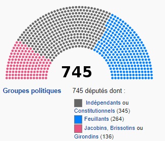 La Constitution du 3 septembre 1791 établi que le roi des Français, chef de l'Etat, exerce le pouvoir exécutif. Il choisit ses ministres (non responsables devant l'Assemblée, mais pouvant être mis en accusation) et dispose d'un veto suspensif sur les lois votées par l'Assemblée nationale. Cette dernière, qui exerce le pouvoir législatif, est élue pour deux ans au suffrage indirect et censitaire. Les citoyens actifs constituent les assemblées primaires qui désignent les électeurs. La Constitution consacre le principe de la séparation des pouvoirs. Les conflits entre le roi et l'Assemblée sont juridiquement insolubles et la foule intervient souvent dans les débats de l'Assemblée.