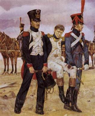 4.300 à 7.000 blessés dans les rangs de la Grande Armée au soir d'Eylau, plus de 21.000 blessés au soir de la Moskova ! Le revers de la médaille de ces victoires napoléoniennes ce sont les charniers, ce sont les ambulances de campagne où l'on ampute à la chaine, ce sont les hôpitaux de fortune où l'on entasse les estropiés de tout genre. Là, le combattant affronte de nouveaux ennemis : gangrène gazeuse, tétanos, dysenterie, fièvres... Pour sauver ceux qui peuvent encore l'être le service de santé met en place tout une chaine d'assistance depuis le champ de bataille jusqu'aux établissements de l'arrière.